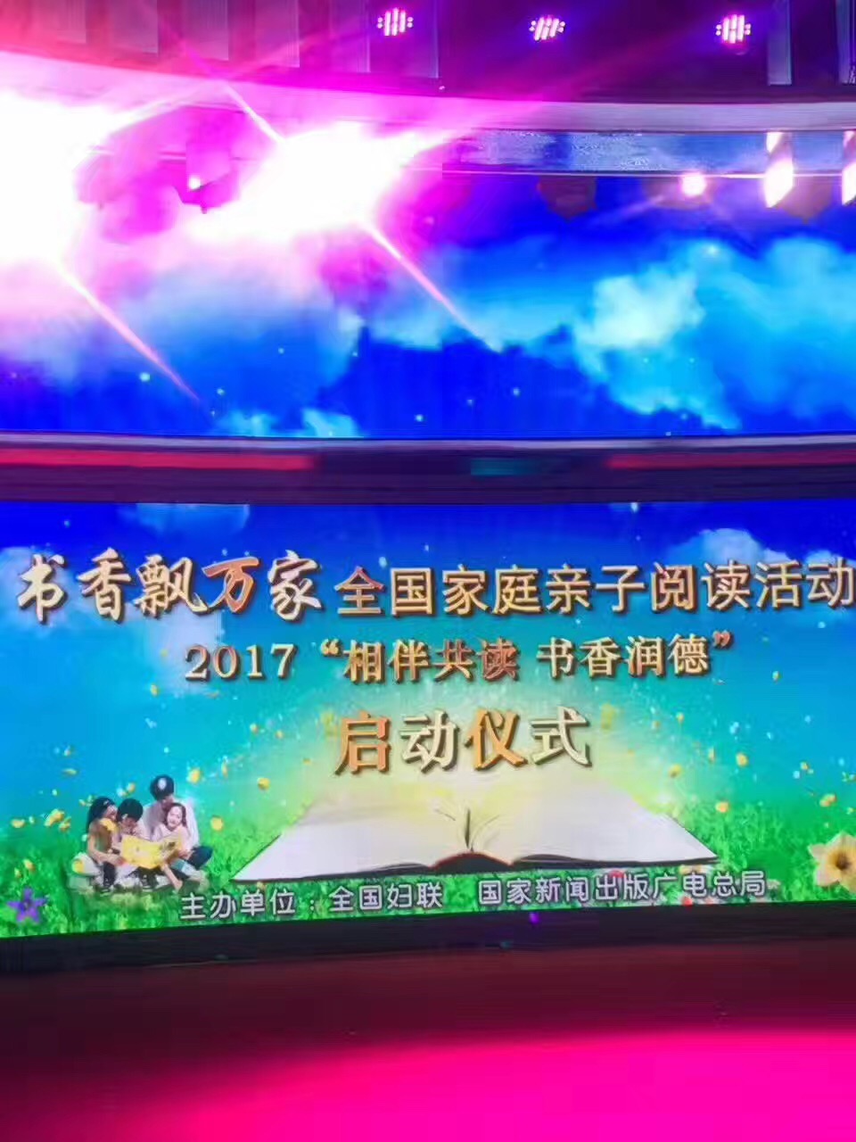 活动嘉宾、阅读大使与家庭代表共同打开LED书灯,开启了2017年“亲子阅读