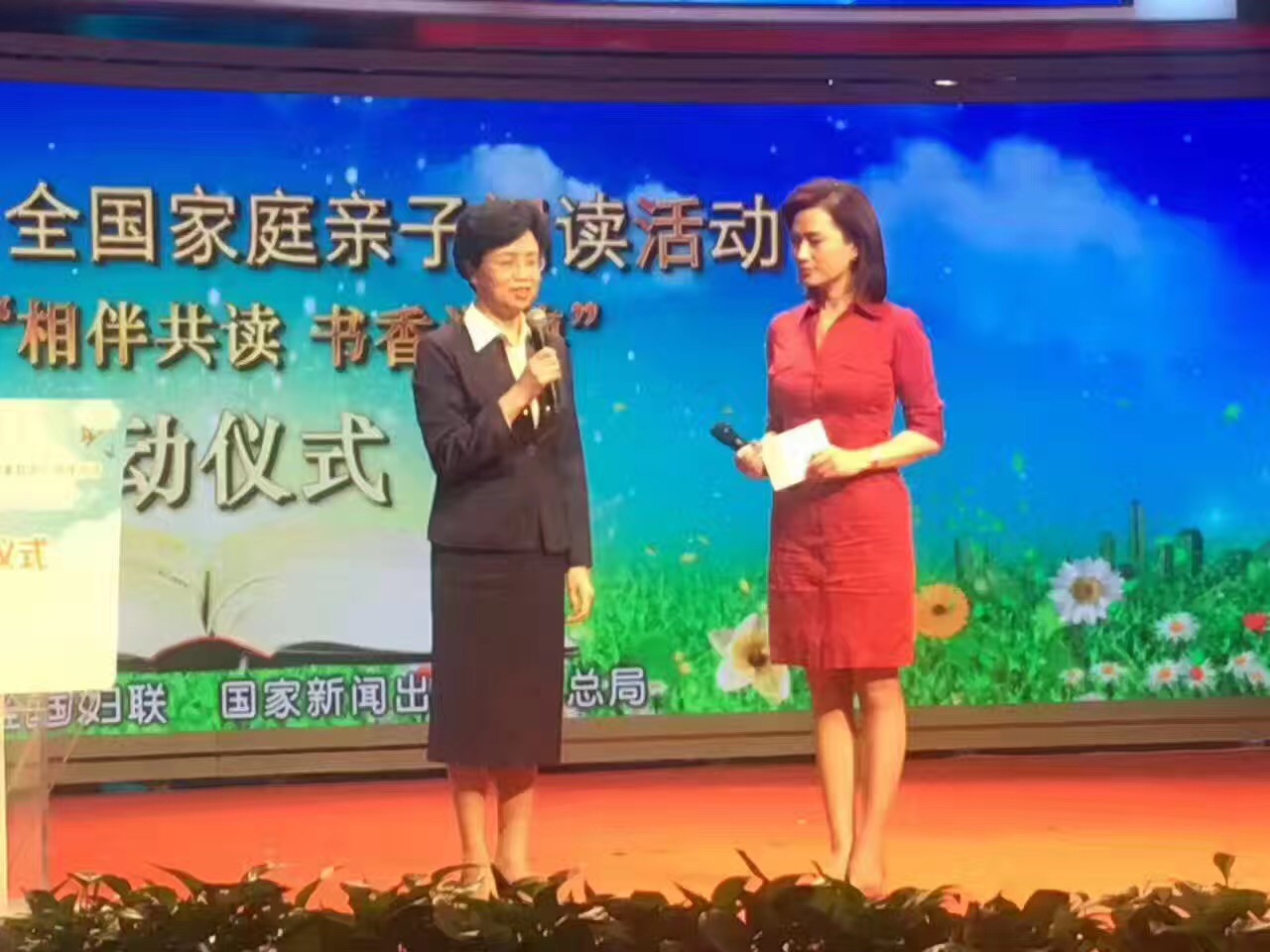 4月21日人民网一号演播大厅内童声朗朗,书香阵阵,由全国妇联和国家新闻出版广电总局共同主办的“书香飘万家”家庭亲子阅读2017年“亲子阅读 书香润德”启动仪式在这里举行。全国妇联副主席、书记处第一书记宋秀岩,国家新闻出版广电总局副局长周慧琳,全国妇联副主席、书记处书记邓丽出席活动。