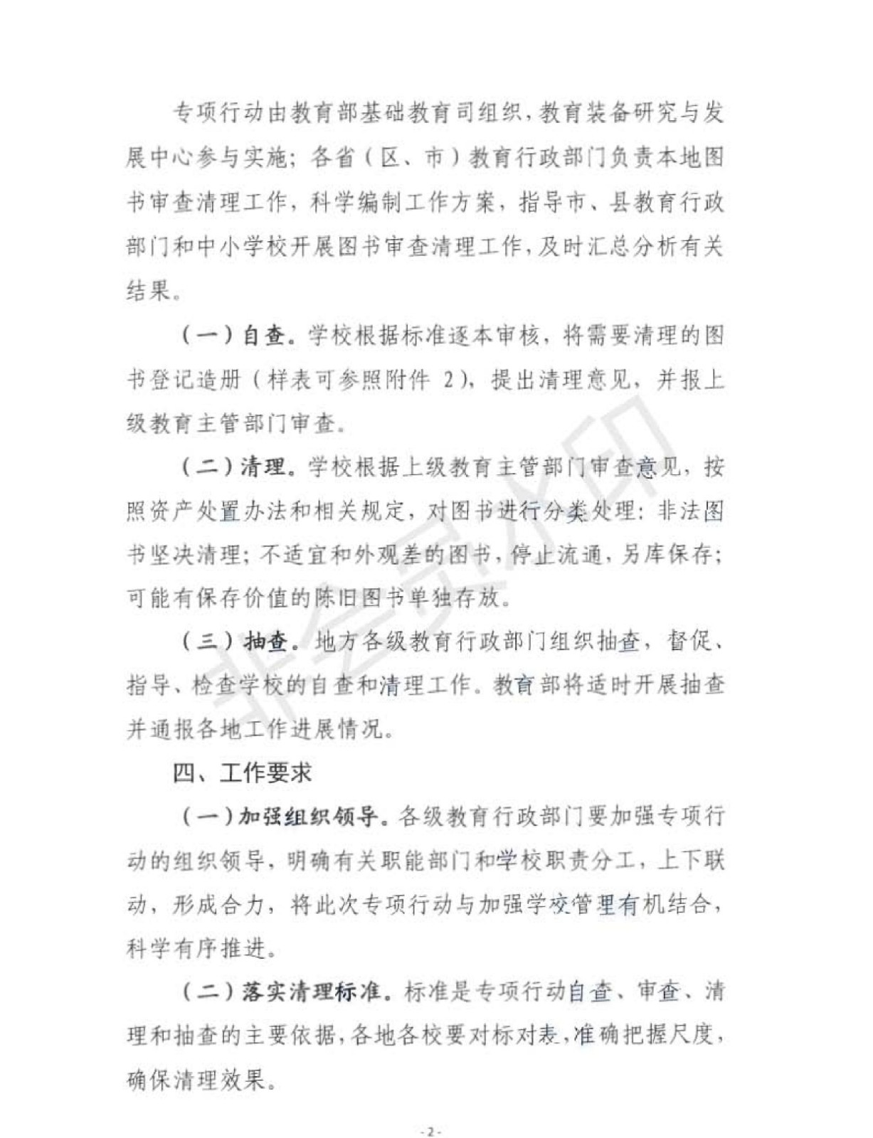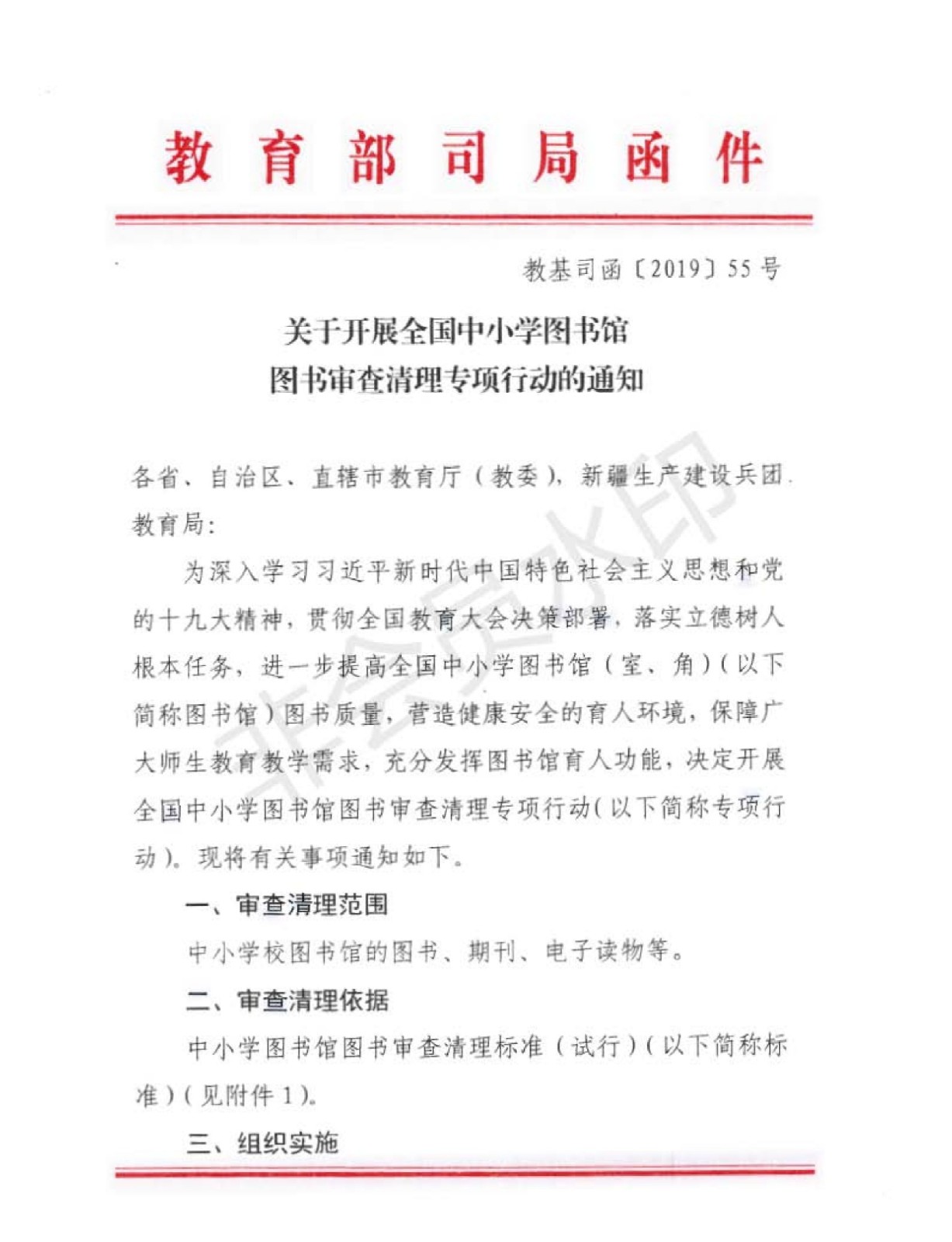 教育部基教司关于开展全国中小学图书馆图书审查清理专项行动的通知