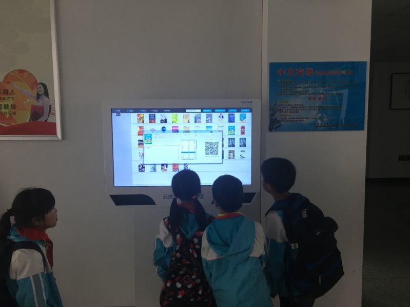 中文在线云资源数字图书馆拥有超过5万种图书,3万集有声读物,13万套试卷,2万份课件,3800种期刊以及50万分钟的海量名师微课。这些资源保证实时更新,孩子们不仅可以在现场阅读,还可以通过U盘和手机等方式下载。同时,云端设备还是展示学校风采的良好窗口,通过触摸屏可以直接点击学校网站、活动图片、学校荣誉和名师风采等。学校还为每个老师配置一个账号,老师们在自己的电脑上就可以阅读、下载这些云资源,更方便的是,还可以在班班通的平台上使用,可以在课堂上跟孩子一起阅读海量书籍,倾听有声读物。