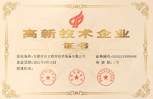 全国高新技术企业认定管理工作领导小组办公室公布的《关于公示2021年第一批认定报备高新技术企业名单的通知》中,安徽省京文教育技术装备有限公司位列其中,荣获“高新技术企业”称号!